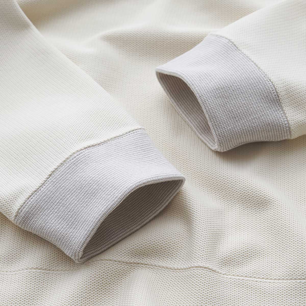 A pullover made from a cotton and polyester blended pique jersey fabric.The kanoko fabric has a moderate thickness while being lightweight, and combined with its dry touch, it offers outstanding comfort.