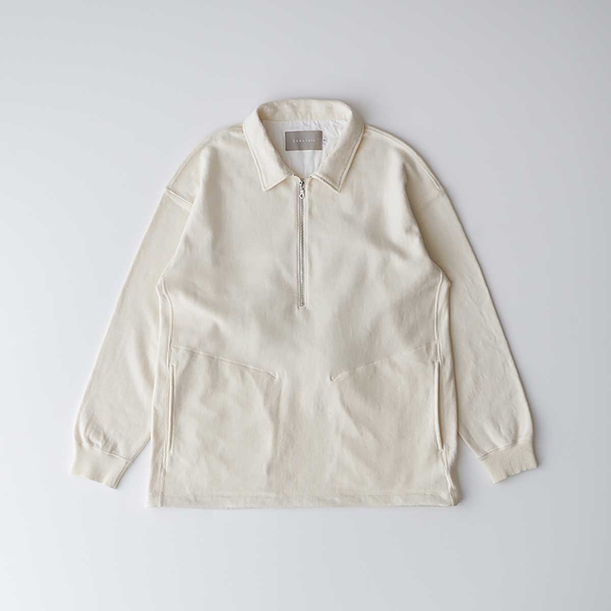 A pullover zip polo made from organic cotton fleece. Orcott Ⓡ is organic cotton cultivated in the Izmir region of Turkey under strict standards for the use of pesticides and fertilizers.