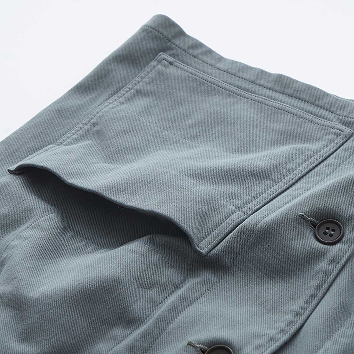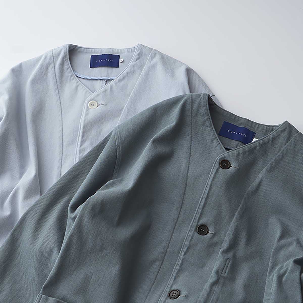 A collarless coverall made with unique stretch inlay material.It has a strong sense of sharpness with a firm expression. Made from knitted material, it offers a soft touch on the skin and elasticity, providing excellent comfort.It's an item that can be easily worn like a cardigan.