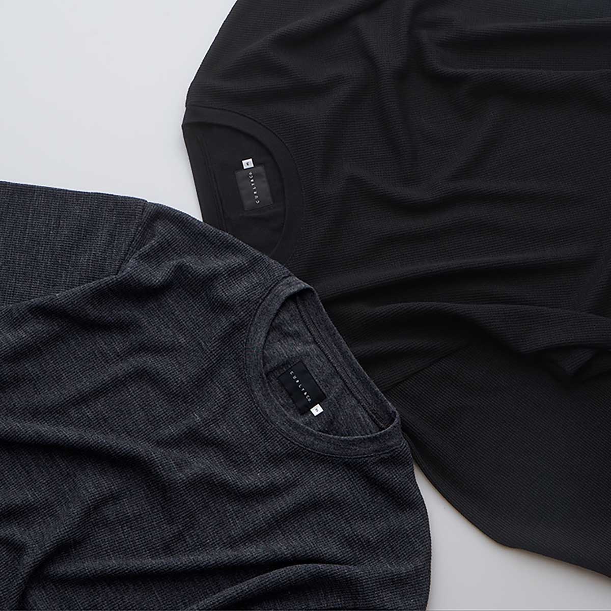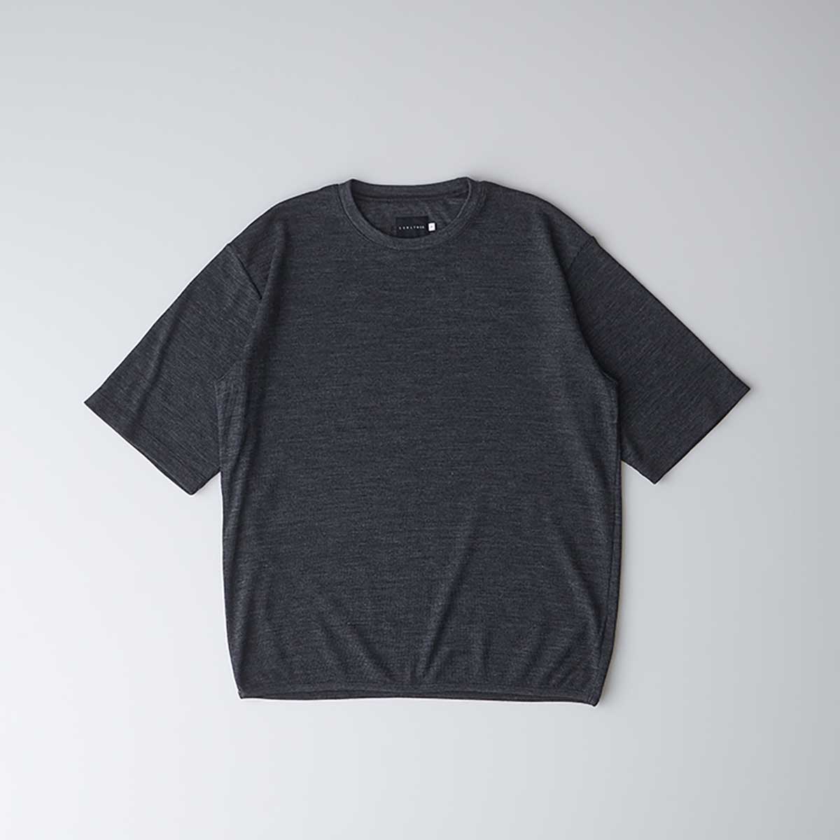 Short sleeve T-shirt made from a polyester blend wool waffle.By blending the inherent temperature regulation, antibacterial, and moisture-absorbing properties of wool with Coolmax®, it provides excellent comfort.While it has a relaxing feel, it is finished with a crisp clarity.